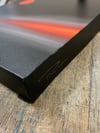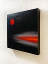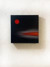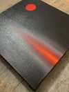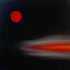A solitary crimson orb hovers in a darkened sky, radiating quiet intensity.