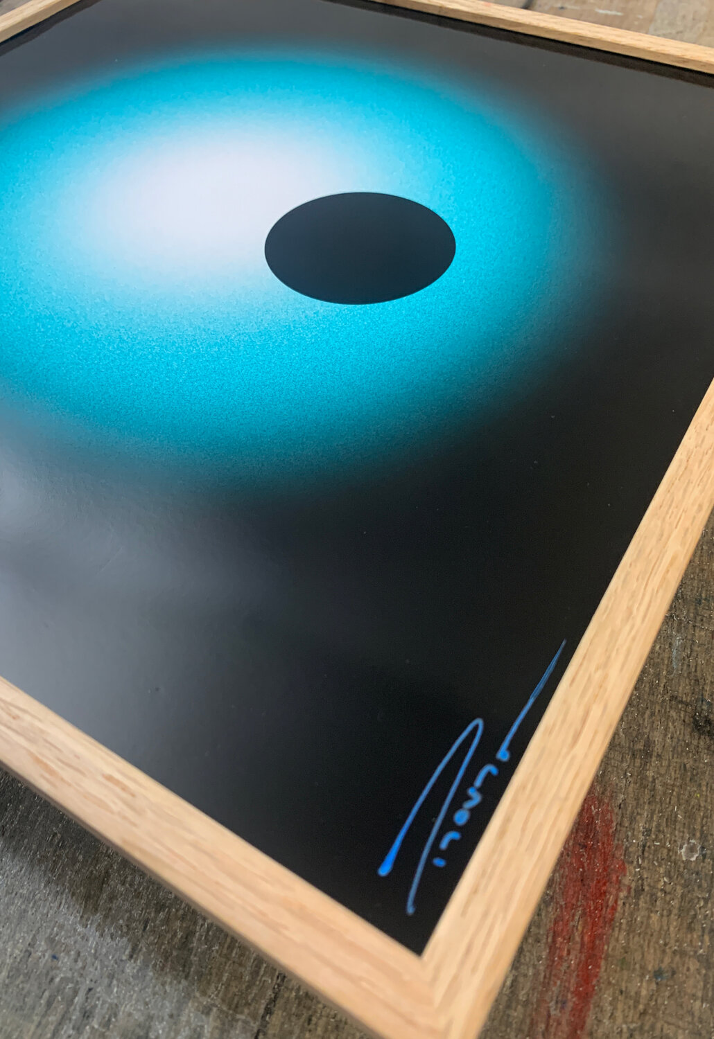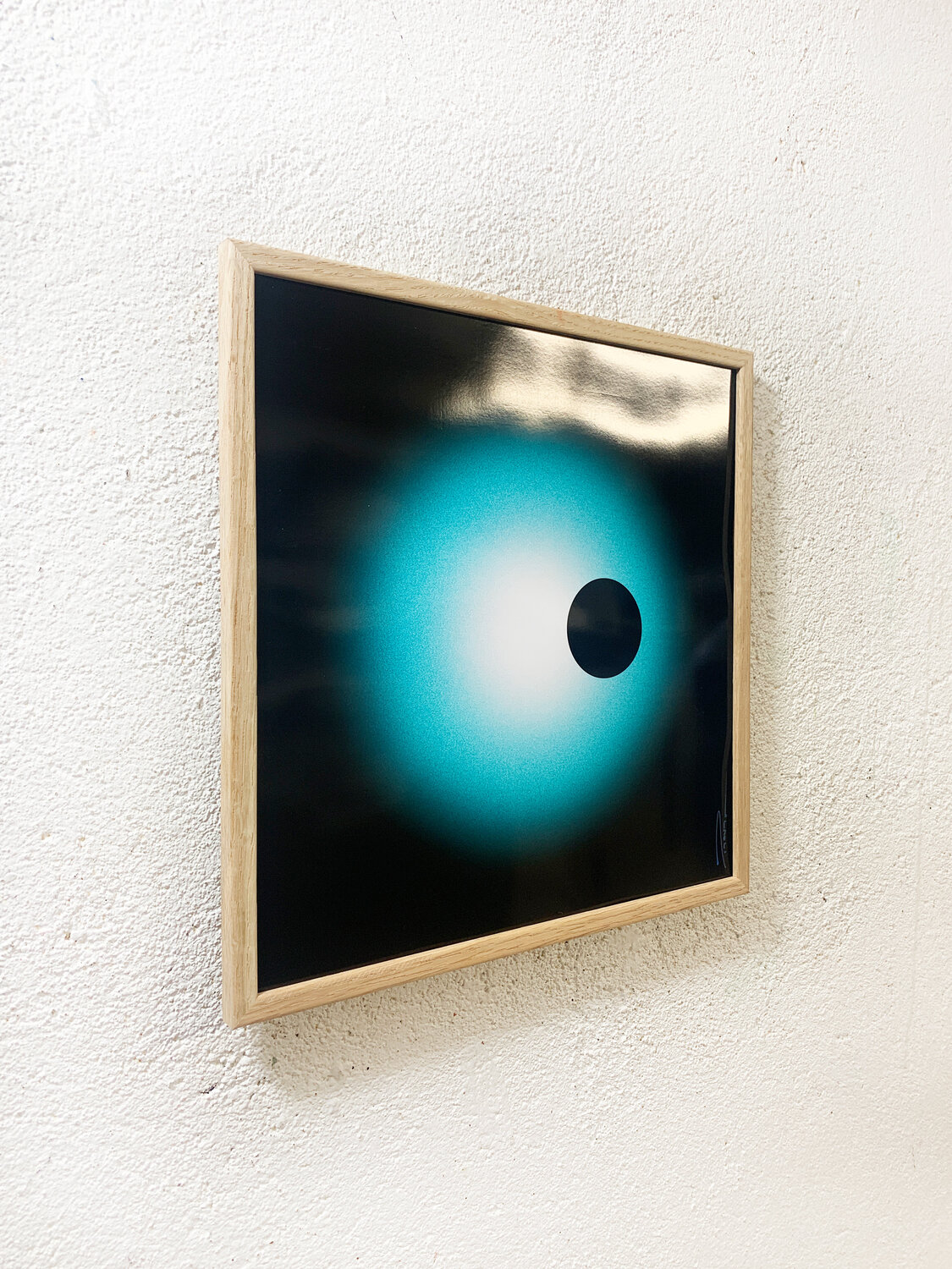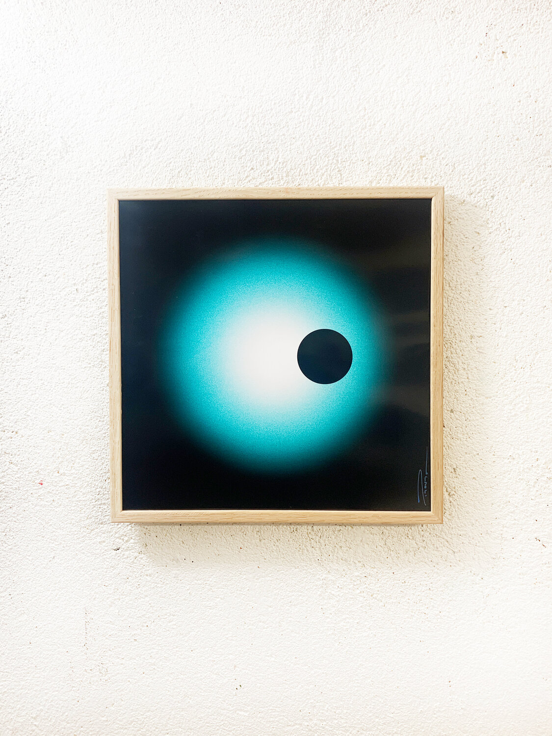 This unique hand-signed print from the Guidance series features a minimalist gradient expanding from a deep black centre into luminous red tones. Its soft, atmospheric diffusion creates a calm, meditative focal point that evokes intuition and inner clarity.