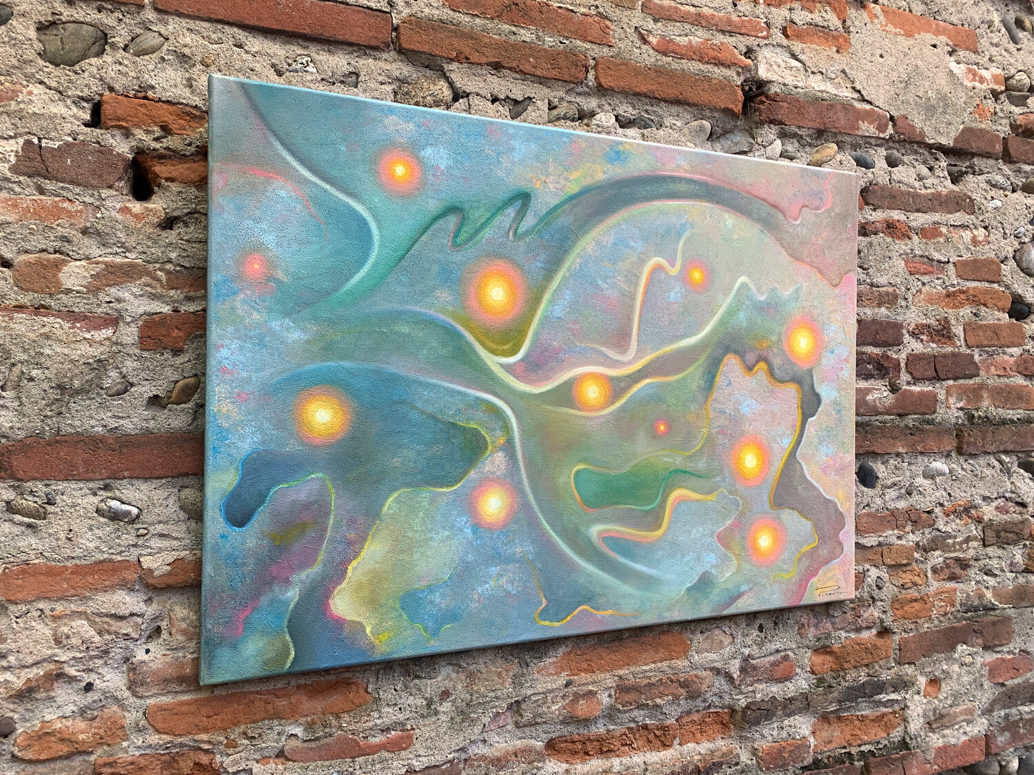 Other details : Artwork on supported wooden frame. Ready to hang.