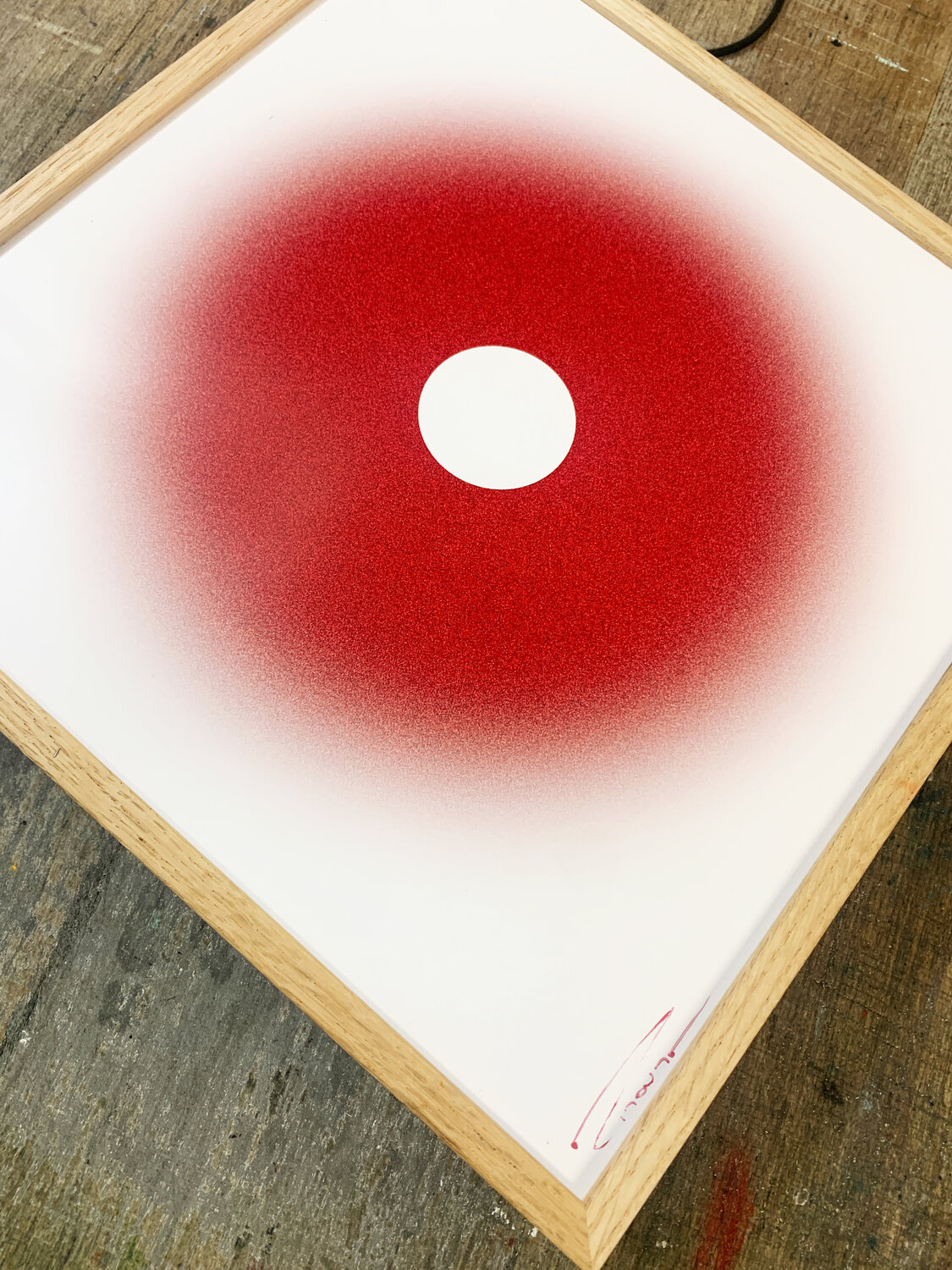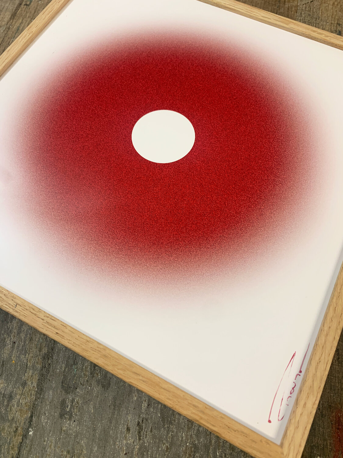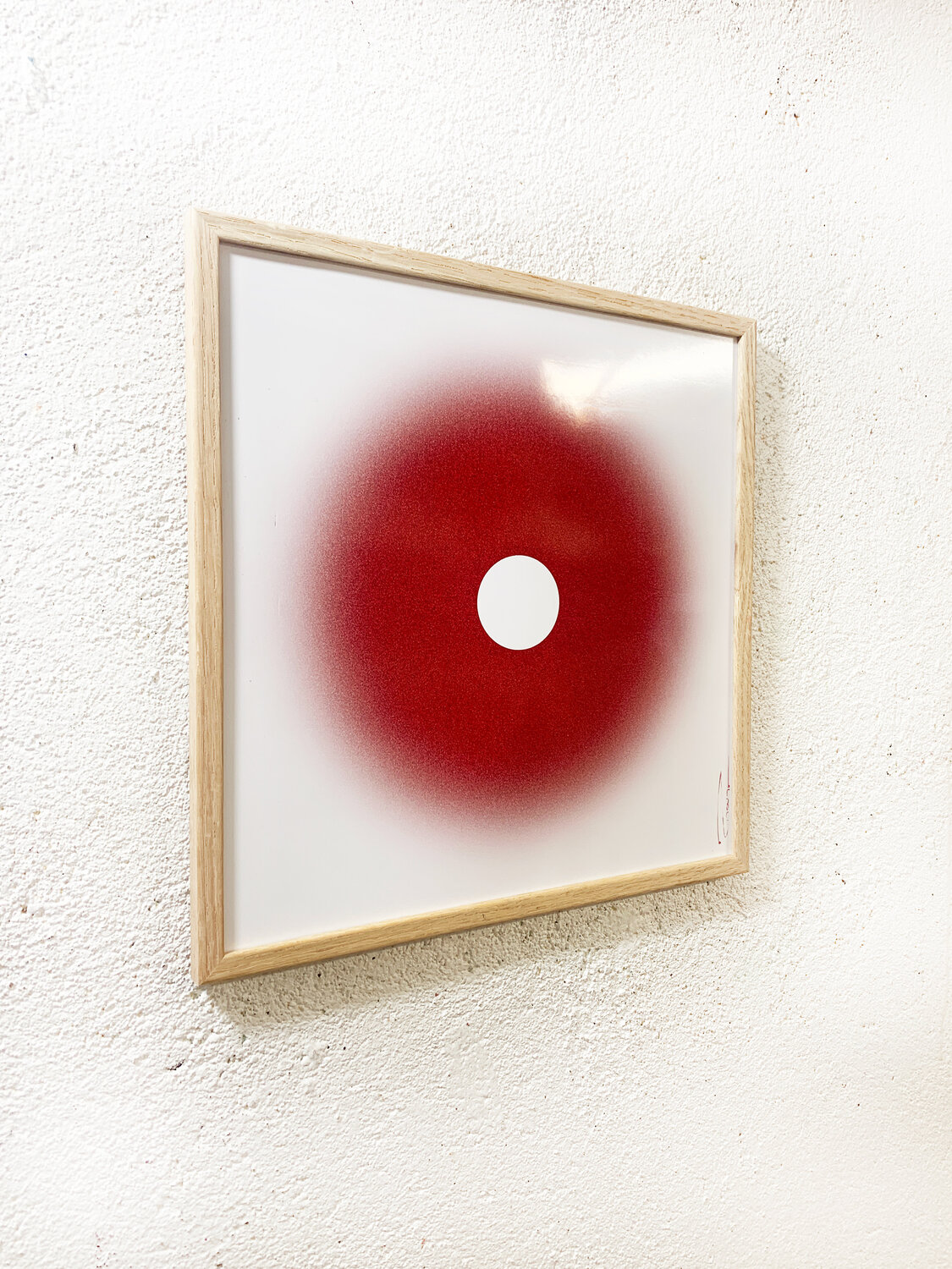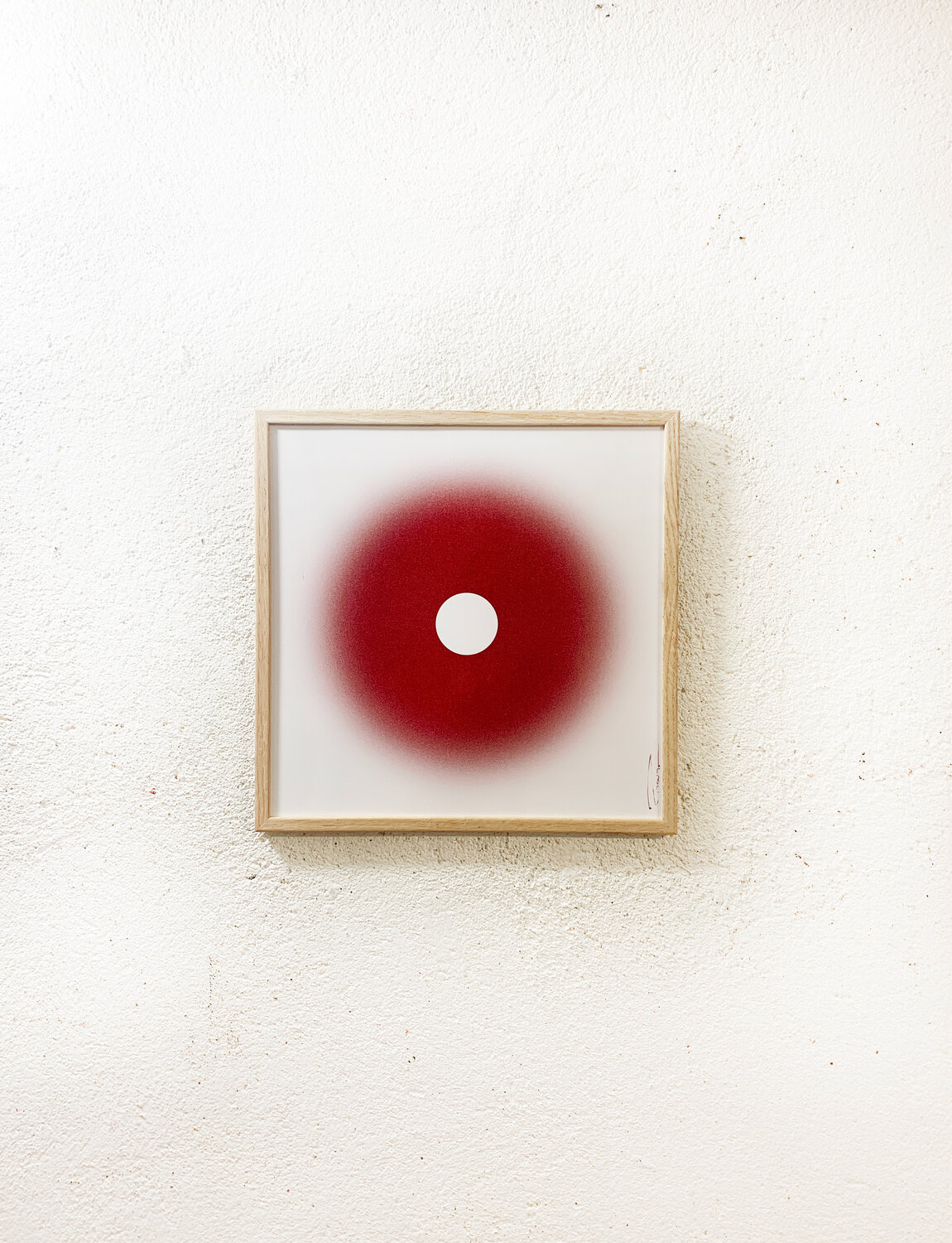 This unique hand-signed print from the Guidance series features a minimalist gradient expanding from a deep black centre into luminous red tones. Its soft, atmospheric diffusion creates a calm, meditative focal point that evokes intuition and inner clarity.